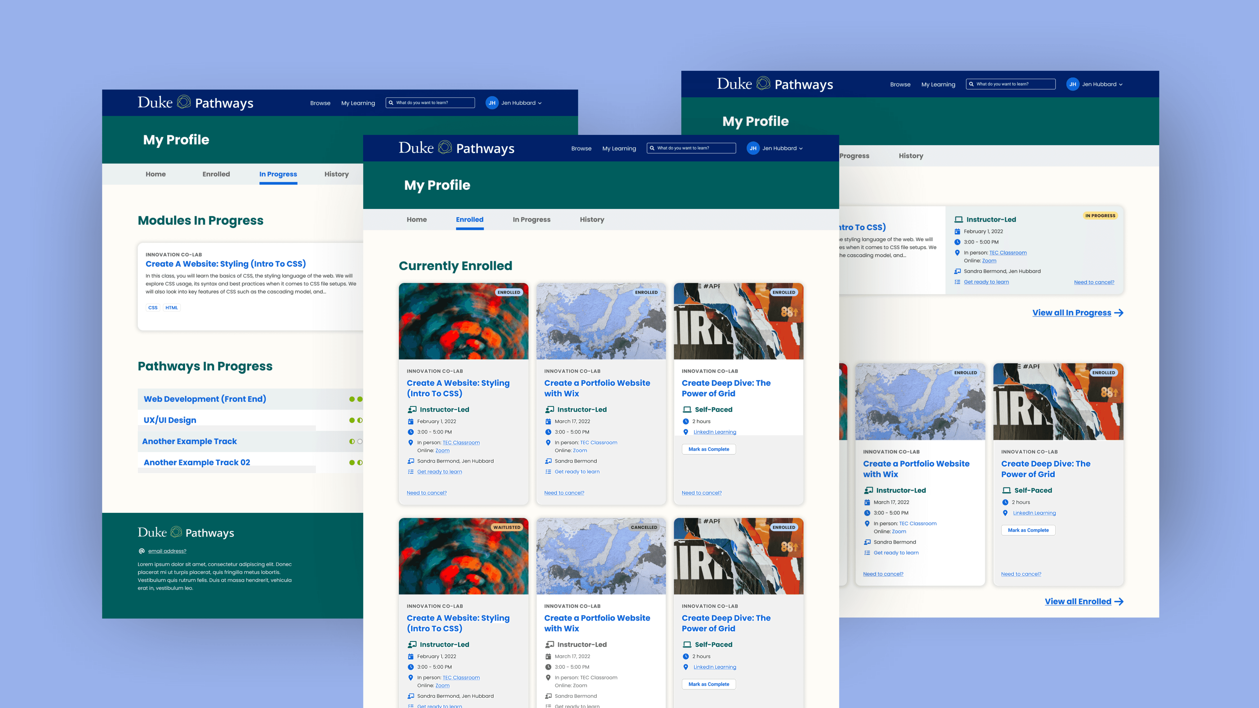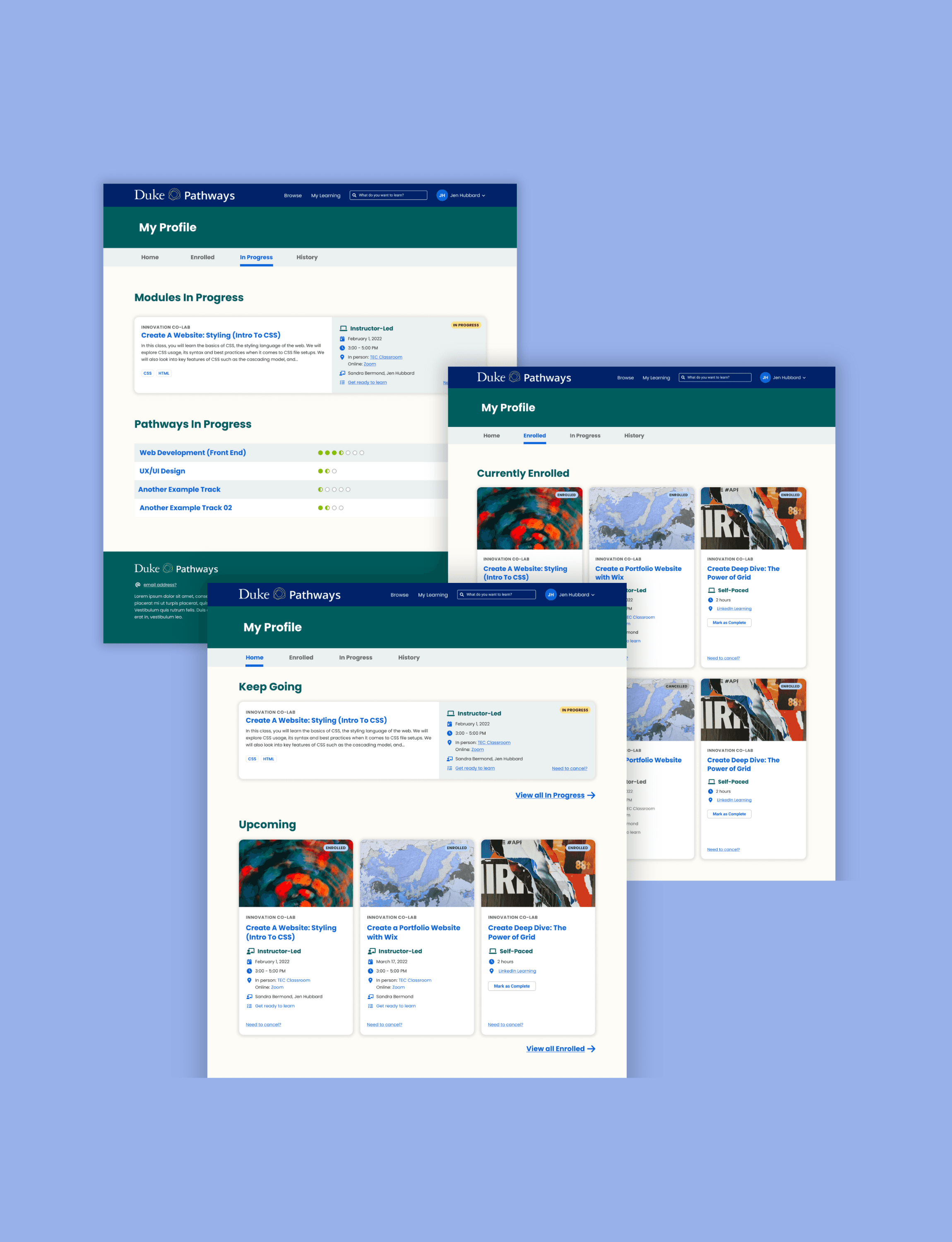 While other areas of Pathways had recently been redesigned, "My Learning" still reflected older design patterns.